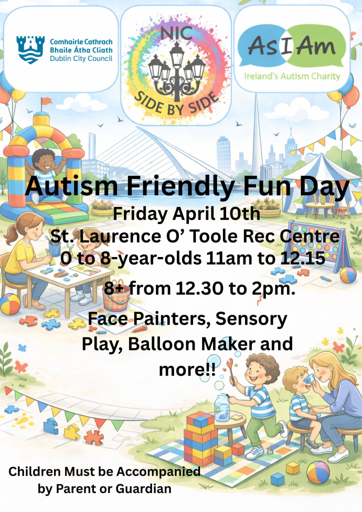 DCC are hosting an Autism Friendly Fun Day on Friday April 10th in St. Laurence O’Toole’s Recreation Centre. See attached flyer.